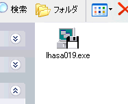 ●2 ダウンロードが完了すると、保存した場所に、左のアイコンが、表示されます。 ↓ ●3 この「lhasa019.exe」を、ダブルクリックして、インストールを開始します。 ↓ |