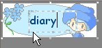 ●7.「4」で、範囲指定した枠の中を、クリックし、文字入力します。 ↓ ●8.カーソルが矢印になったときに、ドラッグすると、文字を移動することができます。 ↓ ●9.他の場所をクリックすると、文字が確定されます。 ↓ |