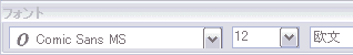 ●3.ツールバーで、「テキスト」ボタン ↓ ●4.カラーボックスで、文字色を選択します ↓ ●5.ドラッグして、文字入力の範囲指定をします。 ↓ ●6.書式設定ダイアログが開くので、文字の大きさ、フォントを指定します。(ダイアログが開かないときは、メニューバーの「表示」→「書式バー」をクリックしてください。) ![]() ↓ |