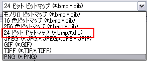 ●1.「ペイント」を起動して、「ファイル」→「開く」で、文字入れしたい画像ファイルを、開きます。 このとき、「ファイルの種類」は、「すべてのピクチャファイル」にしてください。 ↓ ●2.「ファイル」→「名前を付けて保存」で、ファイルの種類を「24ビット ビットマップ形式」にして、仮ファイル名で保存します。 これで、色数が1677万色になりました。 ![]() ↓ |
