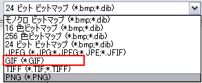 ●21.ペイントで、●20で保存した画像ファイルを開き、「名前をつけて保存」で、gif画像ファイルで保存しなおします。 |