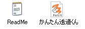 ●22.「かんたん透過くん」を解凍したフォルダ内の、「かんたん透過くん」のアイコンをダブルクリックして、「かんたん透過くん」起動させます。 ↓ |