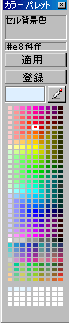 ◇カラーパレットの216色以外の色を、使いたい場合は、「登録」ボタンをクリック ↓ ◇「色の設定」ダイアログが、表示されます。 ![]() 好きな色を、選択して、「OK」を、クリック ↓ ◇カラーパレットの下の部分に、選択した色が登録されます。 次に、この色を使うときは、ここから色を選択することが、できます。 ![]() ↓ ◇後は、「2」のやり方で、色を指定してください。 |