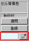 ◇以前に指定した色を、もう一度使うときに、便利です。 カラーパレットのスポイトの形をしたボタン マウスポインタの形が、スポイトになりました。 ↓ ◇編集画面上の使いたい色の場所を、クリック ◇「登録」ボタンの下に、選択された色が表示されます。 ◇後は、「2」のやり方で、色を指定してください。 |